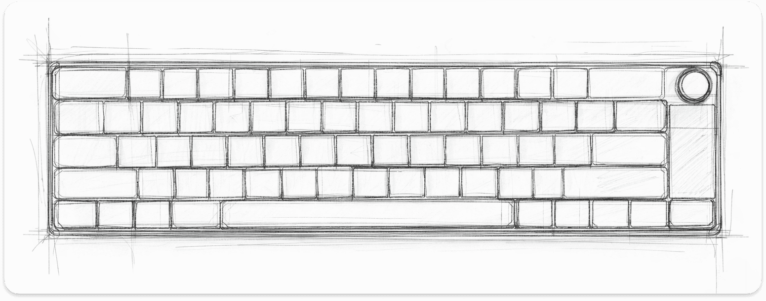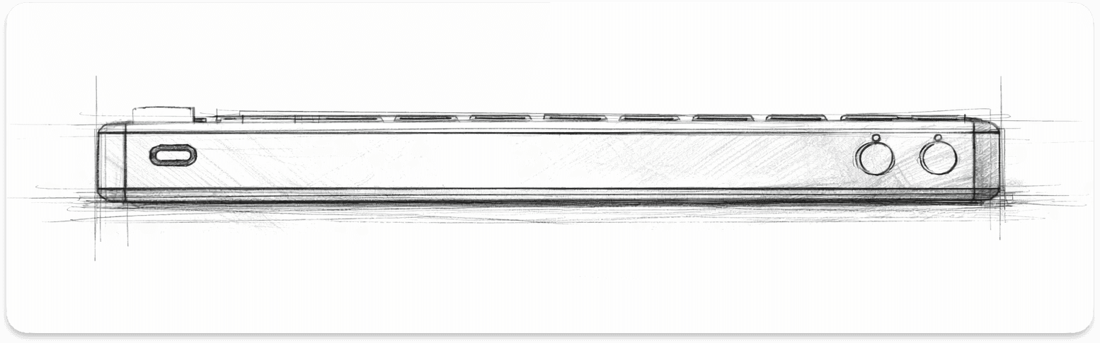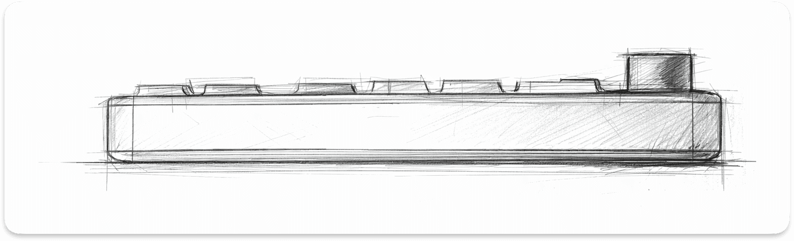 Early sketches were used to explore the overall silhouette and layout direction of the keyboard and refined sketches defined the product’s proportions, edge profile, and structural geometry before moving into CAD.